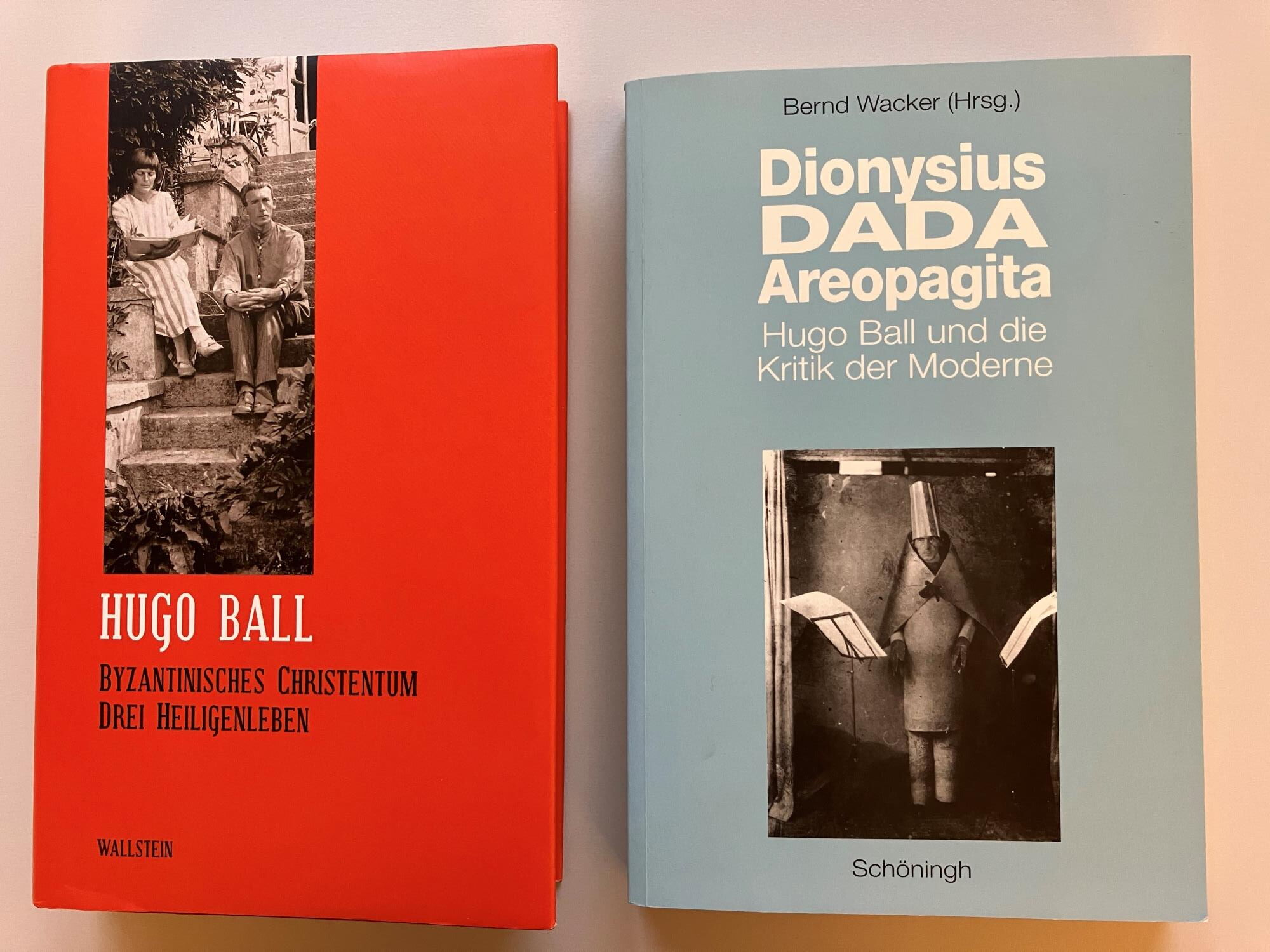 Anhang: Dieser Text ist ein Kurzkommentar zur Vitrine über Hugo Ball im Eingang zur Bibliothek. Er stützt sich vor allem auf: Hugo Ball, Sämtliche Werke und Briefe. Band 1.: Die Flucht aus der Zeit. (2018); Band 5: Die Folgen der Reformation. (2005); Band 7: Byzantinisches Christentum. Drei Heiligenleben. (2011); Bern Wacker, Hg., Dionysius DADA Areopagita. Hugo Ball und die Kritik der Moderne. (1996).